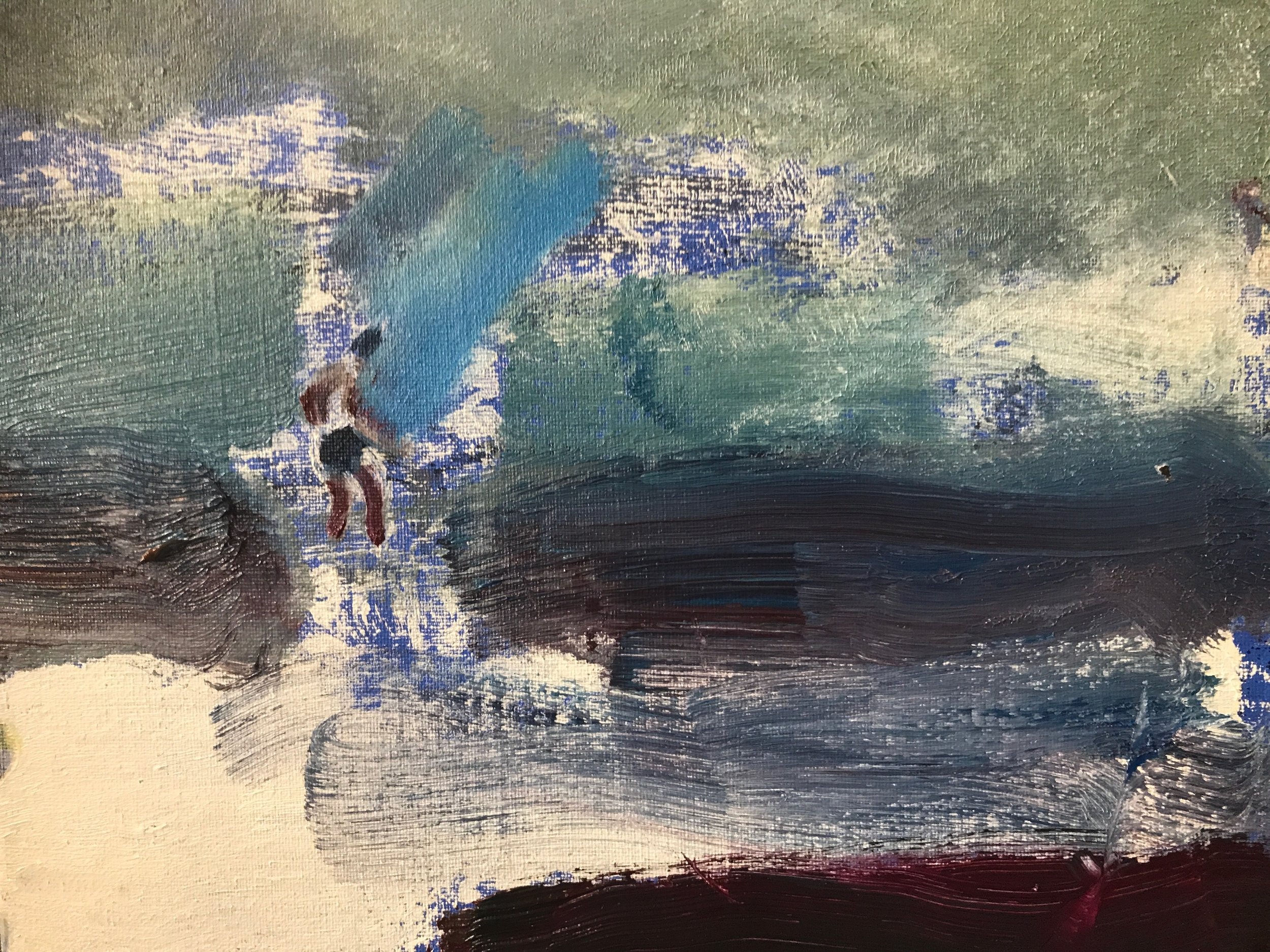 'Two Friends in the Sea', oil on canvas, 30 x 40cm, 2021 (sold)